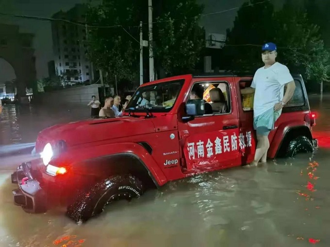 7月23日,河南省金鑫民防(集团)有限公司紧急驰援新乡受洪灾影响严重地区,并捐赠抽水泵、饮用水和食品等防洪抗灾区域稀缺的物品。